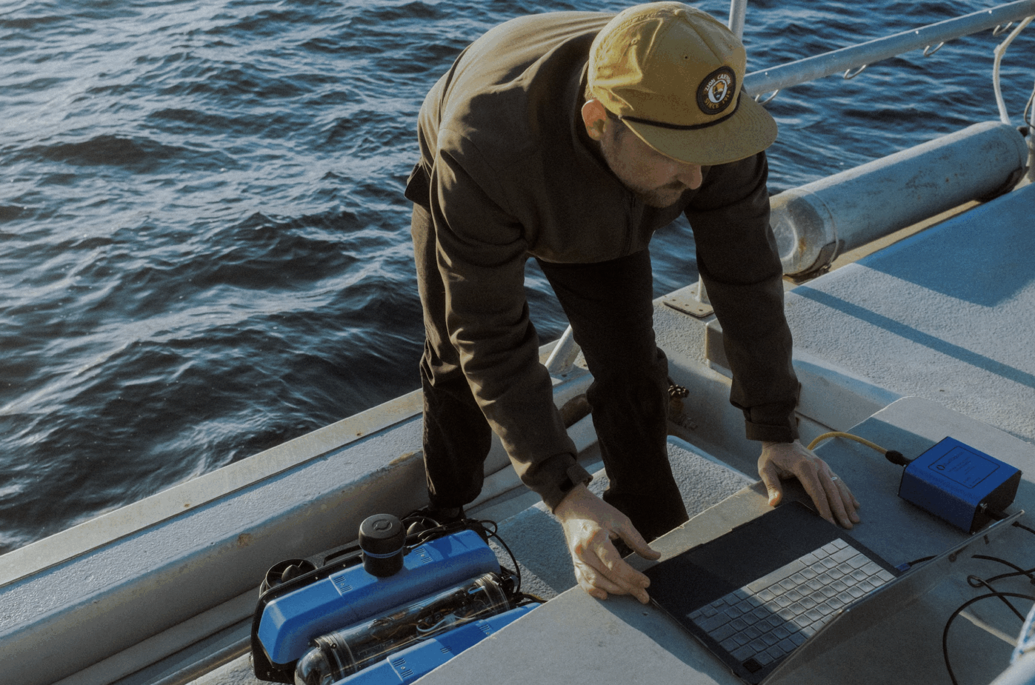 Yüzeyde, pilot ROV’u bir oyun kumandası ve açık kaynaklı yer kontrol istasyonumuz Cockpit’in çalıştığı bir dizüstü bilgisayar ile kontrol eder. Cockpit, araç kontrolü, canlı video ve sensör verileri için son derece özelleştirilebilir bir kullanıcı arayüzüdür.